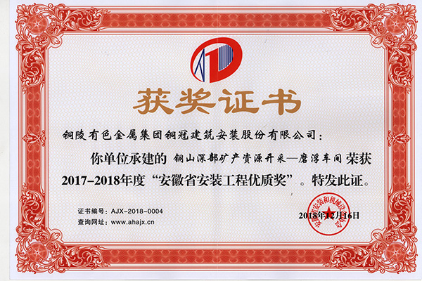 • 銅山磨浮—安裝優(yōu)質(zhì)工程獎(jiǎng)